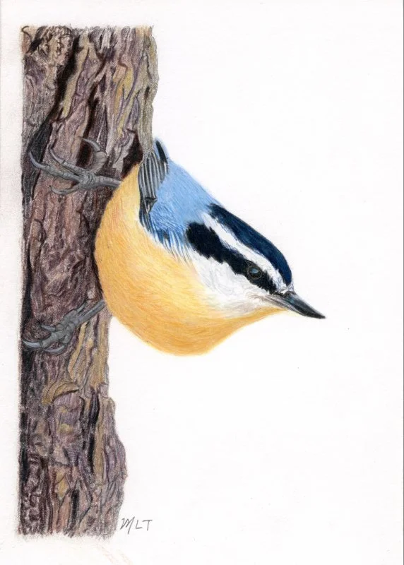 Melanie Thongs is a color pencil artist who got started by taking a self-paced Nature Journaling course from the Cornell Lab of Ornithology. She then immediately signed up for the Natural Science Illustration certificate program through the Rhode Island School of Design, which she completed in three years, with an emphasis on illustrating wild birds. Her art combines natural beauty and aesthetic appeal with scientific accuracy as she seeks to share the wonder and fascination she feels while observing and encountering wild creatures in their natural habitats.